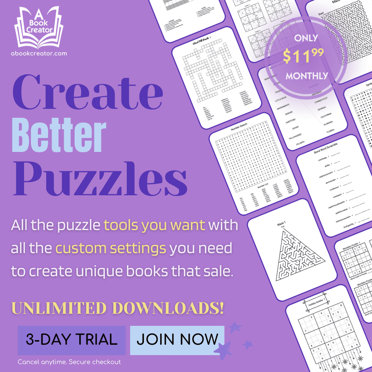 FREE BONUS FROM ME! When you sign up for the 3-Day Free Trial of A Book Creator, I will give you a copy of my Sudoku Puzzles PDF book!